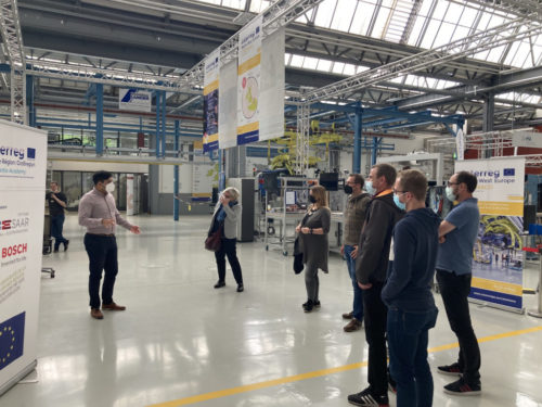 Am 07. Oktober 2021 besuchte eine Gruppe von knapp 15 Betriebsräten und Betriebsrätinnen im Rahmen einer Exkursion der Arbeitskammer des Saarlandes das ZeMA. Die Exkursion fand unter dem Themenschwerpunkt „Künstliche Intelligenz und digitale Transformation“ statt. Nach einer kurzen Vorstellung des ZeMA mit seinen verschiedenen Forschungsfeldern, wurden im Vortrag „Ein Einstieg in die Künstliche Intelligenz“ Grundlagen, Begrifflichkeiten und ein Überblick des aktuellen Stands der Technik sowie Anwendungsbeispiele gegeben. Im anschließenden Rundgang wurden sowohl Anwendungsbeispiele für Künstliche Intelligenz in der Produktion als auch zur digitalen Transformation aufgezeigt. Abschließend wurde über Vor- und Nachteile diskutiert.