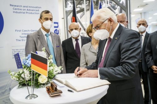 Im Rahmen seines Staatsbesuchs in Tschechien besuchten Bundespräsident Frank-Walter Steinmeier und seine Frau am 27.08.2021 das RICAIP Zentrum an der Tschechischen Technischen Universität (CTU) in Prag. Das Zentrum ist das Ergebnis einer langjährigen tschechisch-deutschen wissenschaftlichen Zusammenarbeit im Bereich Industrie 4.0.