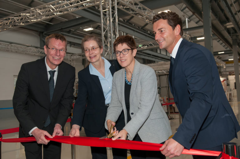 Am 23. Oktober 2017 wurde im Beisein der saarländischen Ministerpräsidentin Annegret Kramp-Karrenbauer der neue Erweiterungsbau des ZeMA feierlich eröffnet. In der aufwendig sanierten, modern ausgerüsteten Halle haben, auf einer Gesamtfläche von 1800qm, vor allem die Demonstratoren und Anlagen des Zentrums für innovative Produktionstechniken „Power4Production“ Platz gefunden, darunter auch das deutsch-tschechische Innovationslabor für Mensch-Roboter-Kollaboration in Industrie 4.0. Zudem stehen nun auch neue Büros und Konferenzräume, sowie ein sehr gut ausgestatteter Sitzungs- und Schulungsraum zur Verfügung. Die umfangreiche Komplettsanierung der ehemaligen Lagerhalle wurde mit rund 3 Mio. Euro aus den Mitteln des Europäischen Fonds für Regionale Entwicklung (EFRE) und der Staatskanzlei des Saarlandes finanziert. Das „Power4Production“ wird am Standort des ZeMA in Saarbrücken von Mitarbeitern aus dem DFKI und ZeMA gemeinsam betrieben. Ein Video zur Veranstaltung finden Sie hier auf der Website des ZeMA.